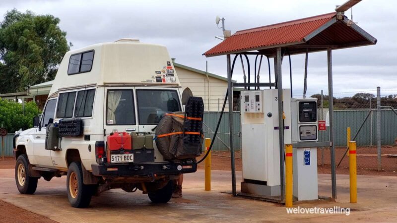 Wir haben nach den vielen Stunden im Auto keine Lust sehr weit zu fahren. So versorgen wir uns in Horrock mit Trinkwasser…