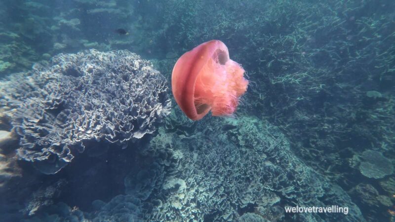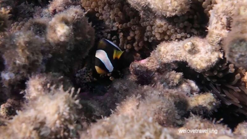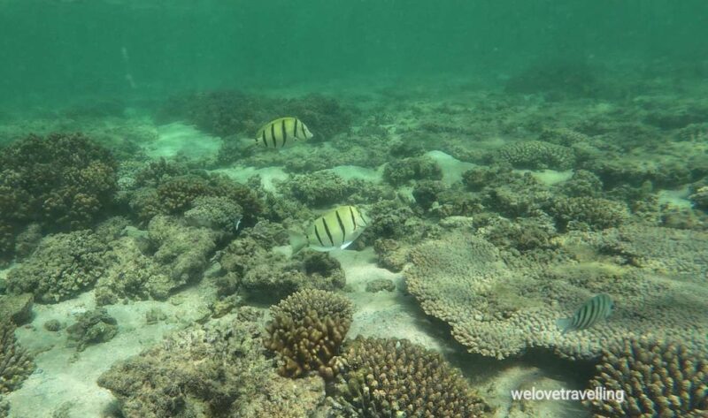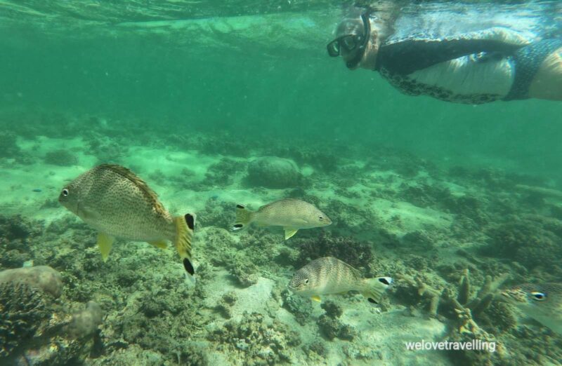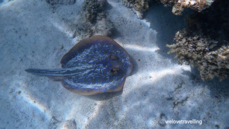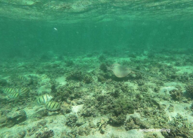 Wir sahen beim Schnorcheln an Maggies Beach Schildkröten, einen Hai, unzählige Rochen, eine Moräne, einen Anemonenfisch und einen Oktopus.