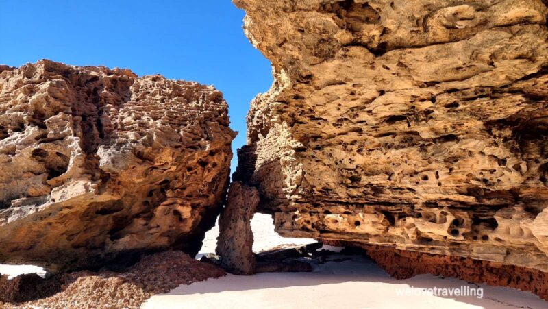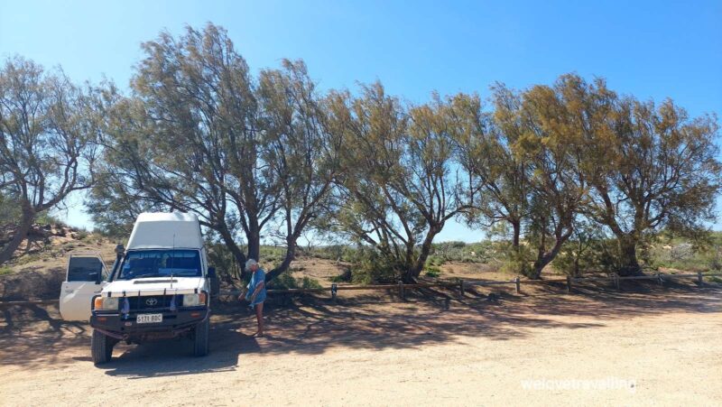 Leider ist die Klimaanlage im Auto wieder ausgefallen. In Geraldton haben wir mehrere Werkstätten abgeklappert, aber erst in 2 Wochen einen Termin bekommen. So bleibt uns nichts anderes anderes übrig als schwitzen 😓.