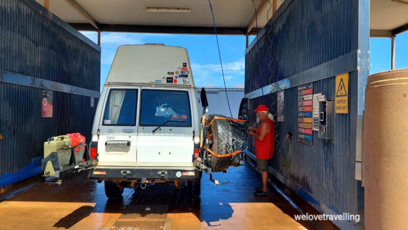 Wir fahren deshalb weiter nach Kalgoorlie zu Kaffee und Snack und spritzen dort das Auto ab.
