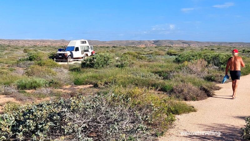 Unser heutiges Ziel ist der Shark Bay Marine Park auf der Peron Halbinsel. Wir haben eine Buchung auf dem Whalebone Campsite.