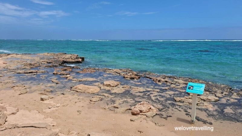 Da wir zwei Tage in Carnarvon am Gascoyne River verbringen, nutzen wir den nächsten Tag um uns die Blowholes am Quobba Beach anzusehen. Auch ein fantastisches Schnorchelgebiet, Aquarium genannt. Tatsächlich sind wir zum optimalen Zeitpunkt der Tide da und freuen uns über die Vielfalt an Fischen, Rochen, Seesternen und Korallen.