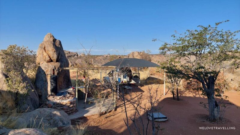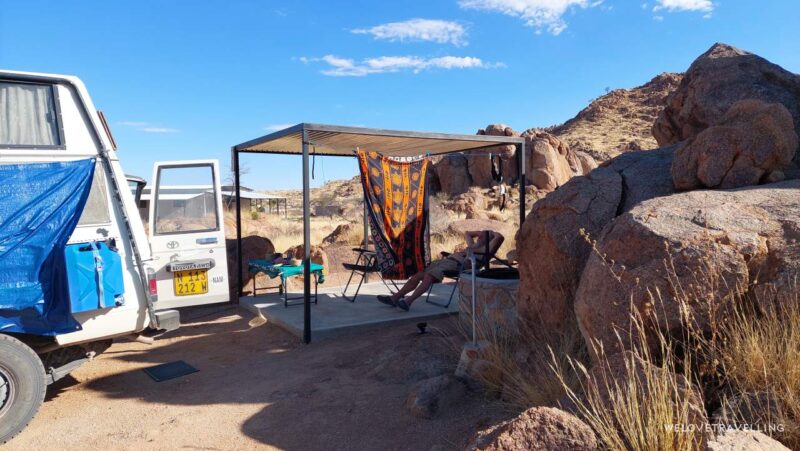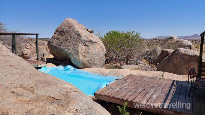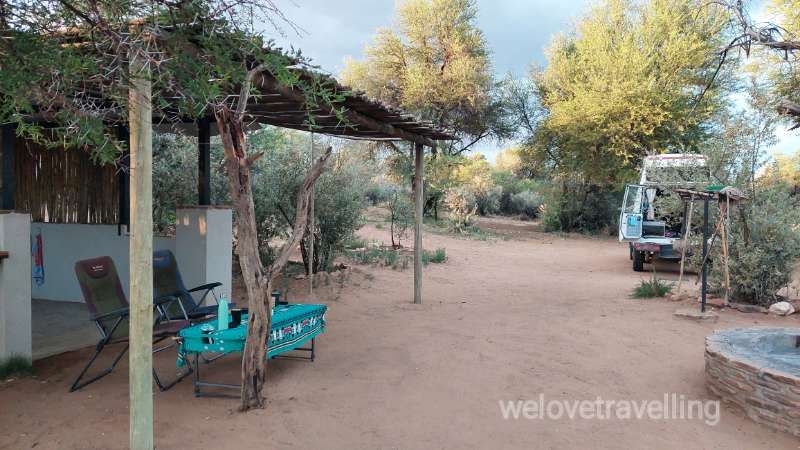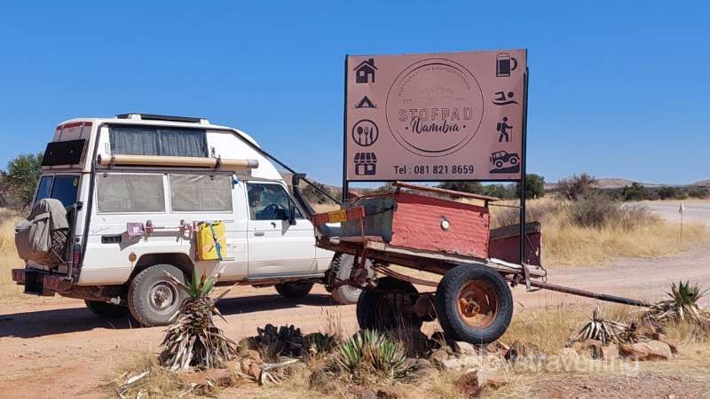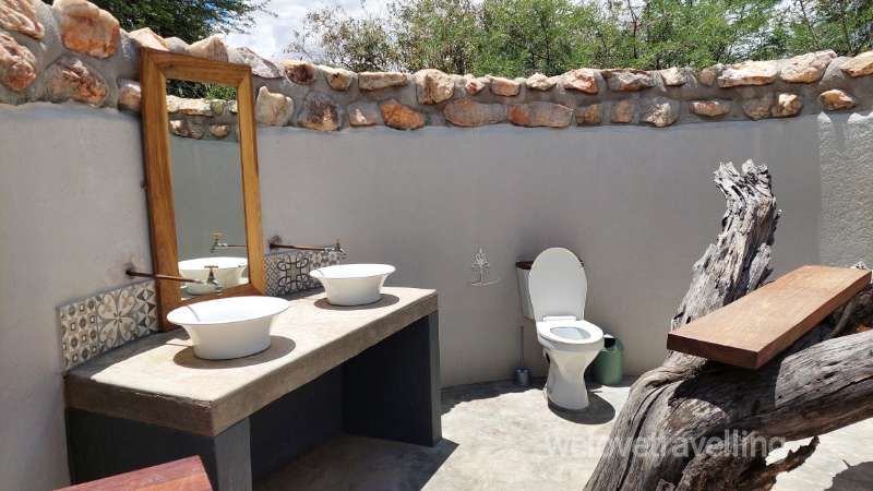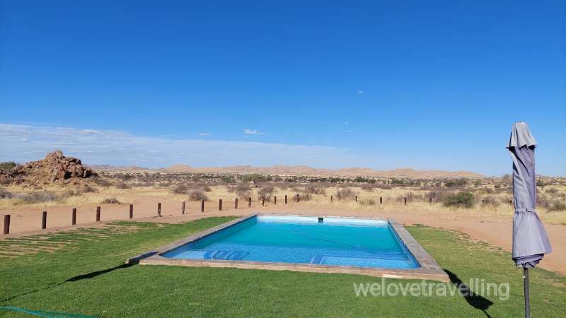 Südlich von Nauchas liegt das relativ neue Stofpad Camp. Es ist komfortabel. Mit Swimmingpool,  Küche, privatem Bad in sehr schöner Landschaft.