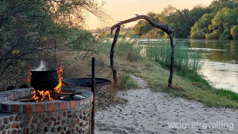 In Rundu haben wir uns für Camp Hogo entschieden, was uns sehr gut gefällt. Carike empfängt uns herzlich und wir genießen den freien Blick auf den Fluss und das gegenüber liegende Angola.