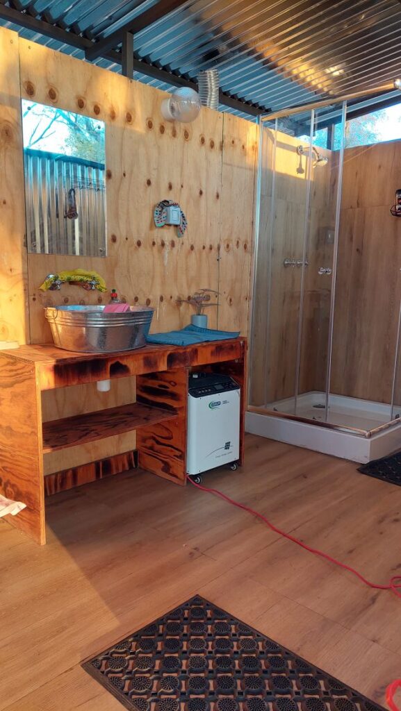 Mit Canvas und Wellblech ausgestattete Ablutionhäuschen