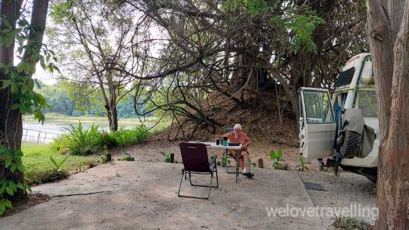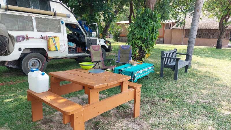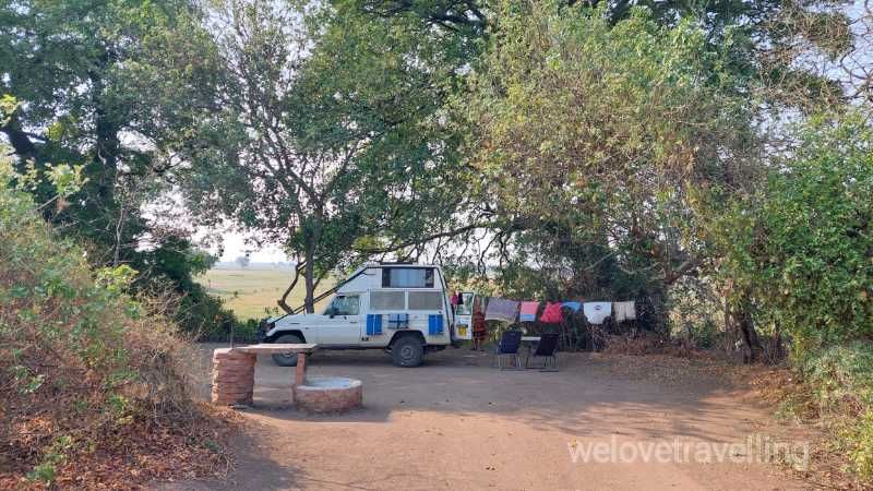 Heute gings weiter bis Kongola, wo wir uns im Mbezi Camp eingebucht haben, bei Geoffrey. Er gehört dem Tribe der Mafwe an und hat das Camp für die Community angelegt. Sehr großzügige Plätze mit herrlichem Ausblick und grünem Rasen.