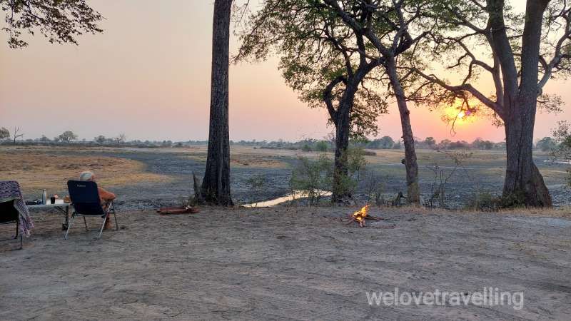 Wir bewegen uns weiter Richtung Linyanti und landen im Chobe Hideaway Camp. Es ist sehr heiß den Nachmittag über und wir freuen uns als die Sonne langsam untergeht.