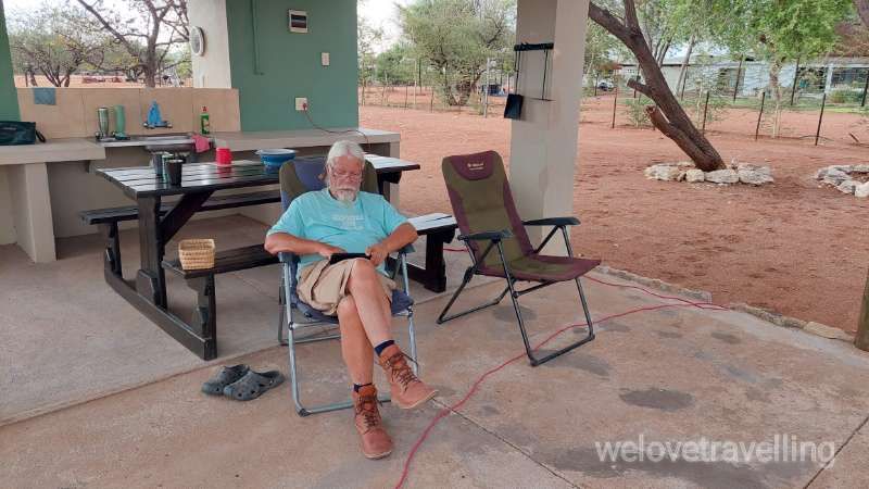 Es war sehr windig am Morgen und wir beschlossen ohne Frühstück los zu fahren. So haben wir Grootfontein schon um die Mittagszeit erreicht. Noch einmal fiel die Entscheidung auf Meteorite Camp, hier passt einfach alles.