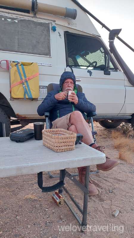 Die Nacht war richtig kalt und wir freuen uns über die ersten Sonnenstrahlen am Morgen.