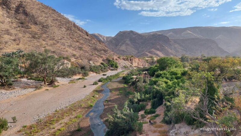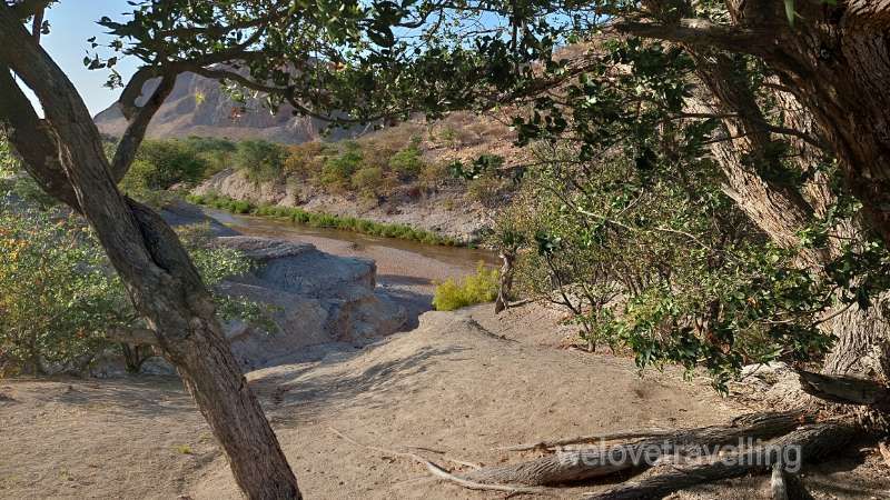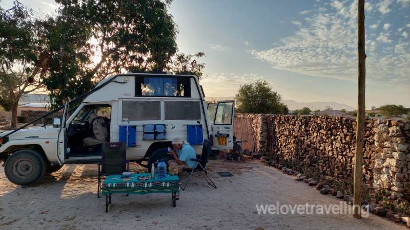 Für heute haben wir das Khowarib Community Camp ausgewählt,  wo wir über dem Fluss Khowarib mit Blick in die Schlucht stehen.
