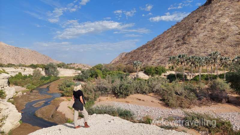 Zebras, Oryxe, Kudus und Warzenschweine gibt es hier. Und Idylle pur. Man kann herrlich entlang des Flussbetts auf und ab wandern und die Felsformationen und Pflanzen bewundern.