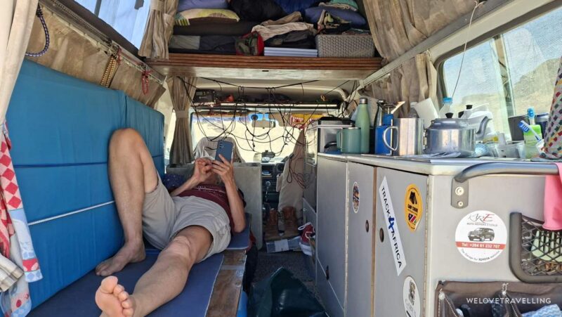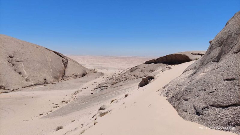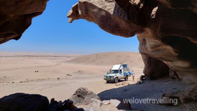 Noch einmal übernachten wir in atemberaubender Umgebung. Es ist sehr windig und der Sand und Staub kriecht in alle Winkel und Ritzen.