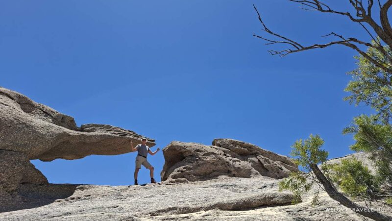 So war der Plan. Manchmal muss man Pläne über den Haufen werfen. Da wir ohne Frühstück losfuhren, machten wir am Vogelfederberg, dem ersten Camp im Park ausgiebig Brunch mit Speck und Ei. Da es uns dort so gut gefallen hat, beschlossen wir einfach zu bleiben. Kletterten über die Felsen, genossen die Aussicht und Ruhe.