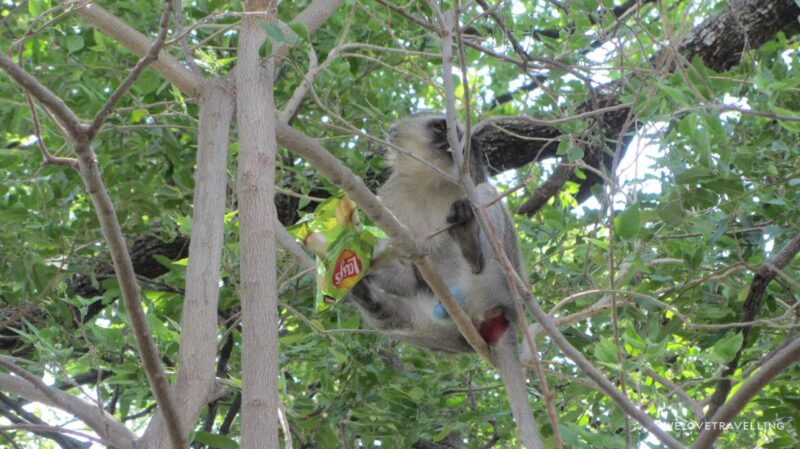 Abends haben sich die Paviane in den Bäumen über uns zum Schlafen bereit gemacht. Wir haben leider etwas zu spät reagiert und erst als es mehrfach geplatscht hat, gesehen, dass das Auto ziemlich eingekotet war.