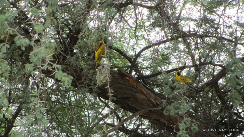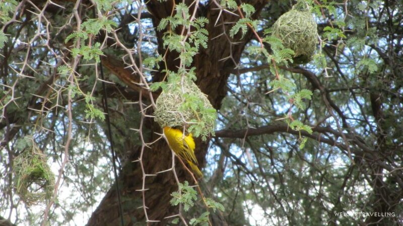 Gamefarm Steinheim an der C26 wird unsere letzte Station vor Windhoek. Am Riverdance Campsite direkt am Fluss Gurumanas genießen wir die letzten zwei Tage, bevor es nach Elisenheim zum auf- und ausräumen geht. Die Kameldornakazie des Platzes beherbergt unzählige fleißige Webervögel, gelb schimmernd, die ihre Nester um die Wette bauen.