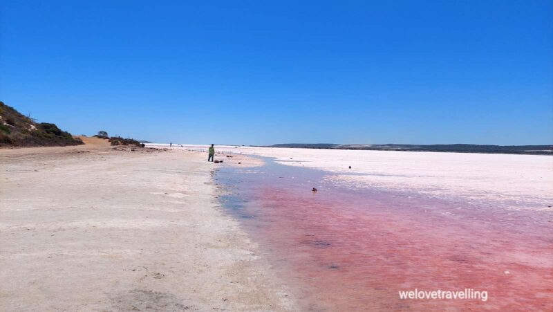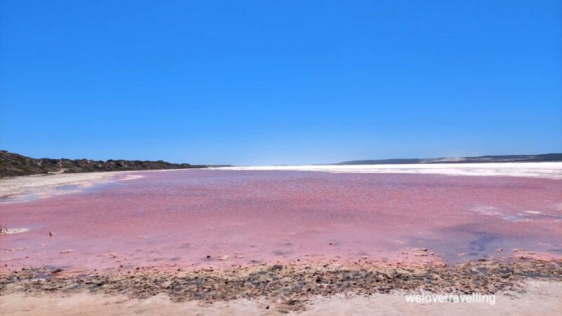 Die Küstenstraße nach Horrocks, wo wir heute und morgen übernachten, führt an der Hutt Lagoon vorbei mit ihrem Pink Lake.